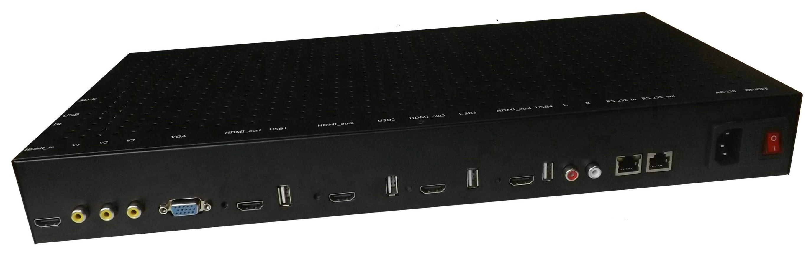 1、單臺(tái)支持4拼接HDMI接口輸出,支持20臺(tái)級(jí)聯(lián)使用;