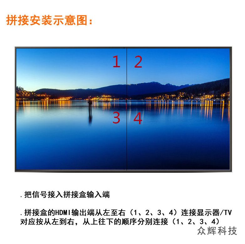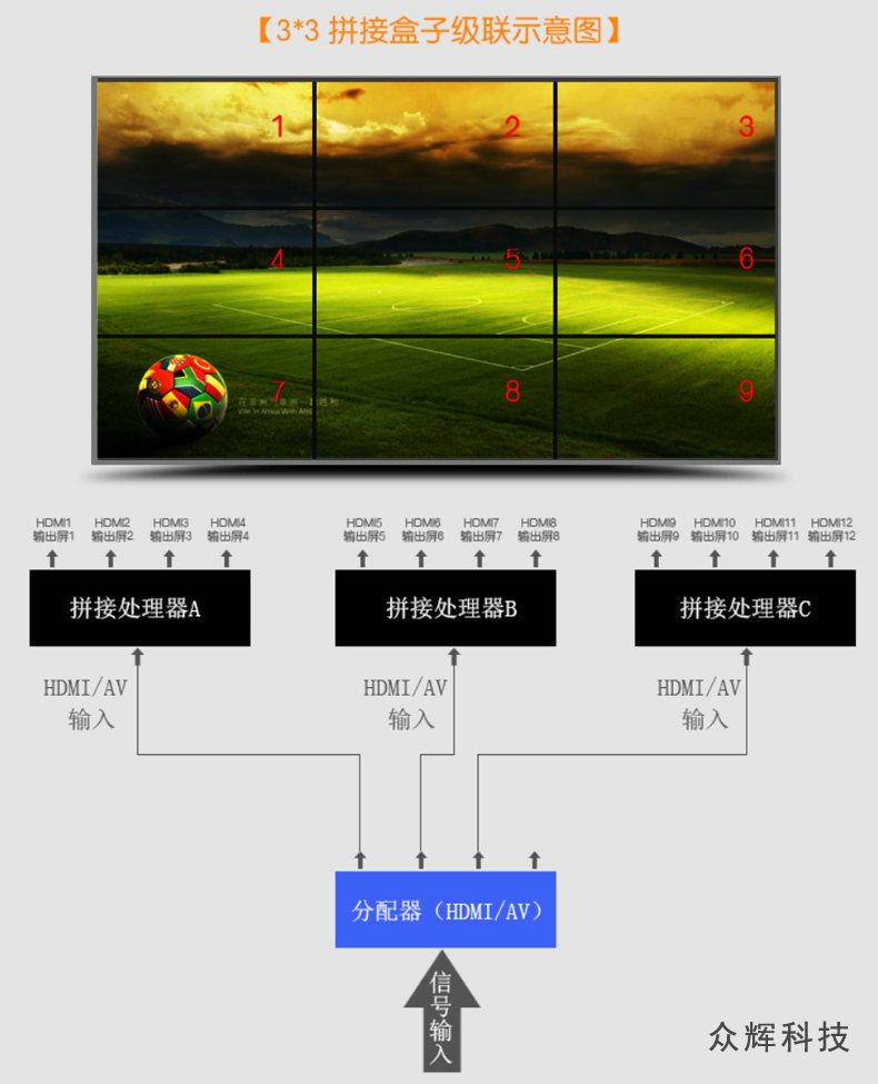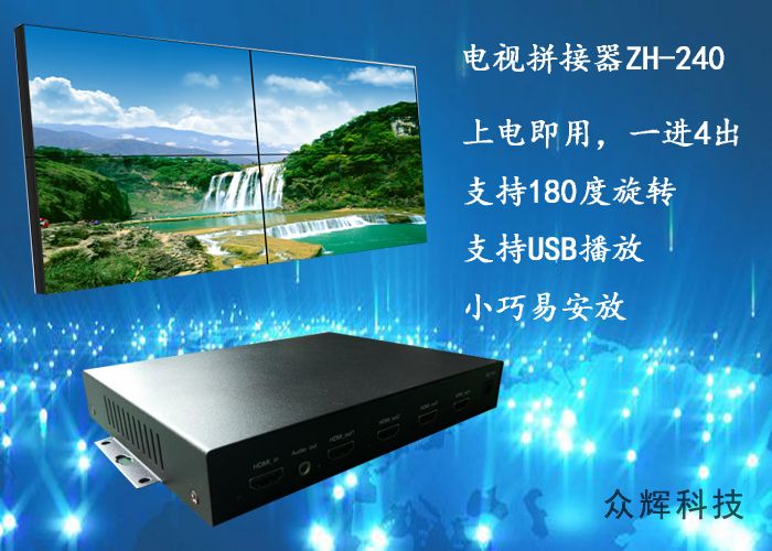 4個HDMI高清接口USB循環播放 眾輝4電視拼接盒ZH-240