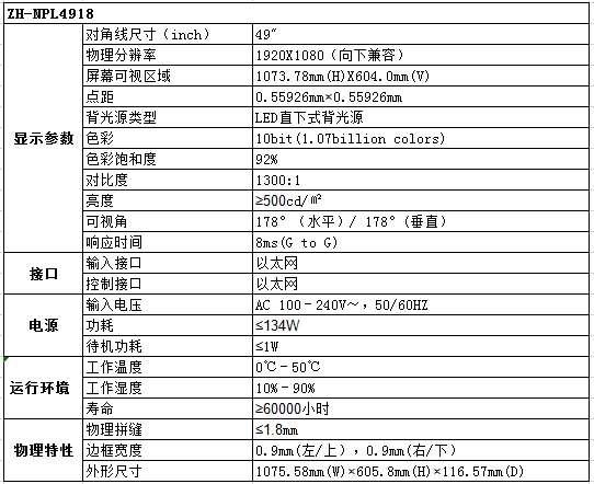 ZH-NPL4918  LG49寸1.8mm拼縫